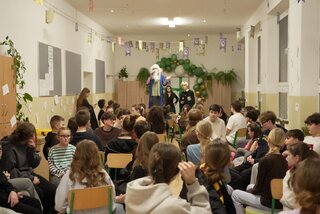 Členovia školského parlamentu si pre mladších spolužiakov pripravili pestrý program plný hier, súťaží a zábavných aktivít inšpirovaných kúzelníckym svetom. O pravú atmosféru sa postarali aj tematické kostýmy, vďaka ktorým sme mohli stretnúť čarodejníkov, študentov rokfortských fakúlt či známe postavy z obľúbenej série.